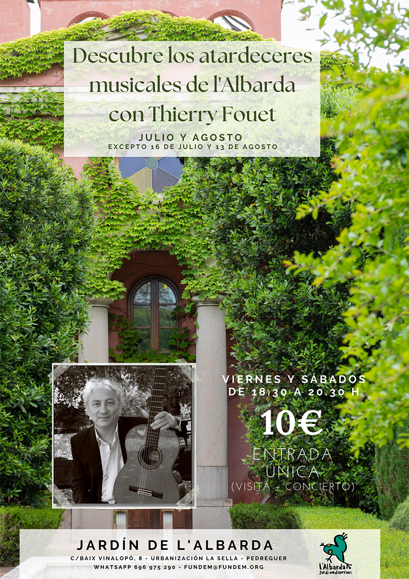 We have a proposal for you: the summer sunset in the Jardin de l’Albarda wrapped in the notes of Thierry Fouet’s guitar.