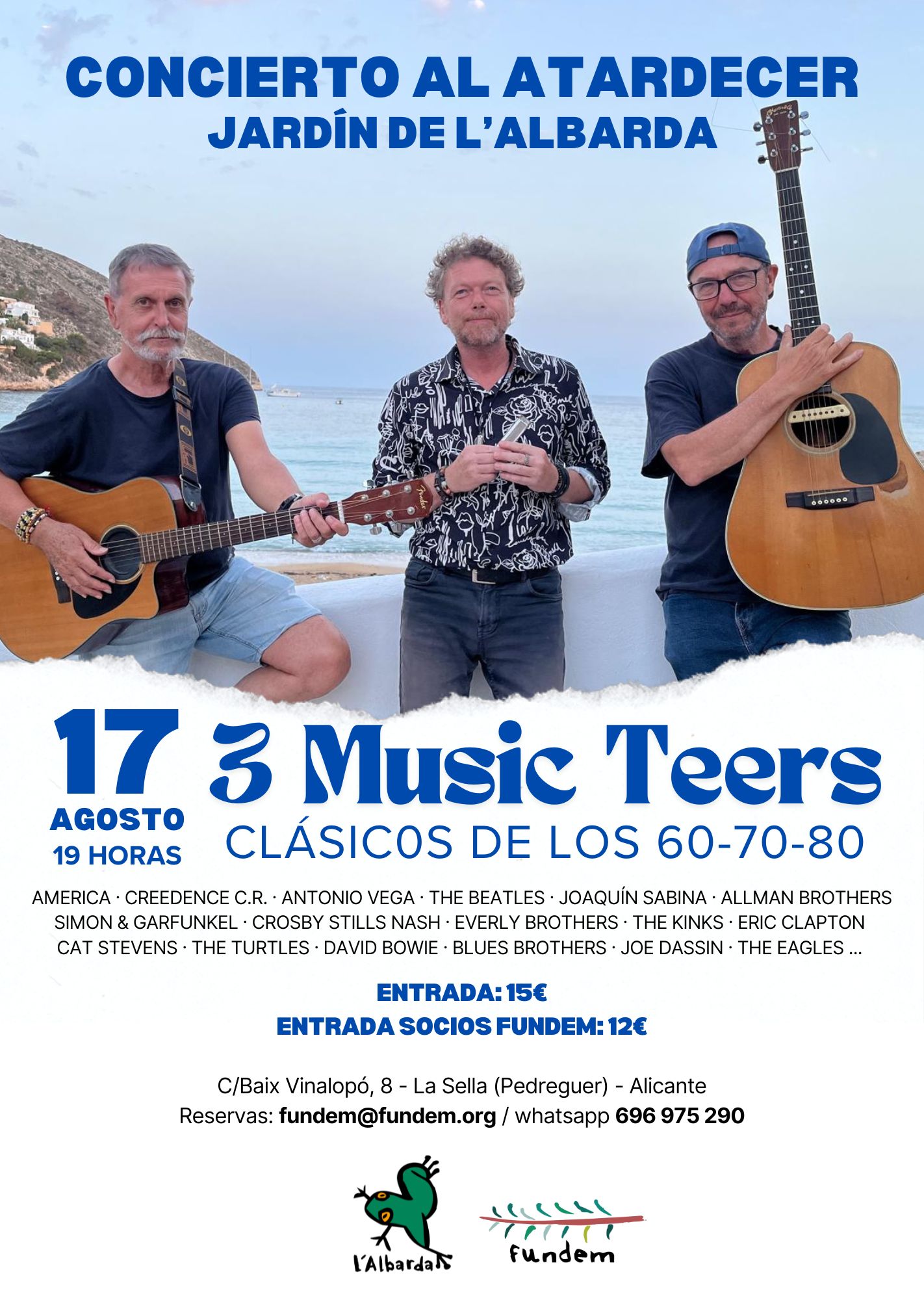 Si te apetece un remember en directo de la música de los años 60-70 y 80, resérvate la tarde del sábado 17 de agosto para este concierto. Podrás disfrutar de temas de The Beatles, Joaquín Sabina, Allman Brothers, Simon & Garfunkel, Eric Clapton, David Bowie…