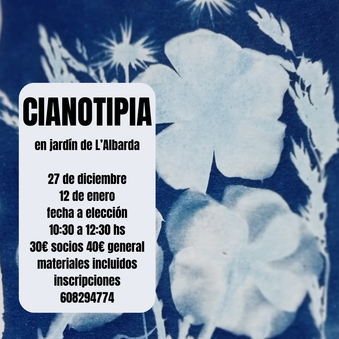 En este taller profundizaremos la técnica de revelado de la cianotipia incorporando a los trabajos la utilización de los negativos fotográficos, la tipografía y los dibujos. Imparte: Virginia Chiodini Precio: Socios 30€- General 40€ Inscripciones en 608294774