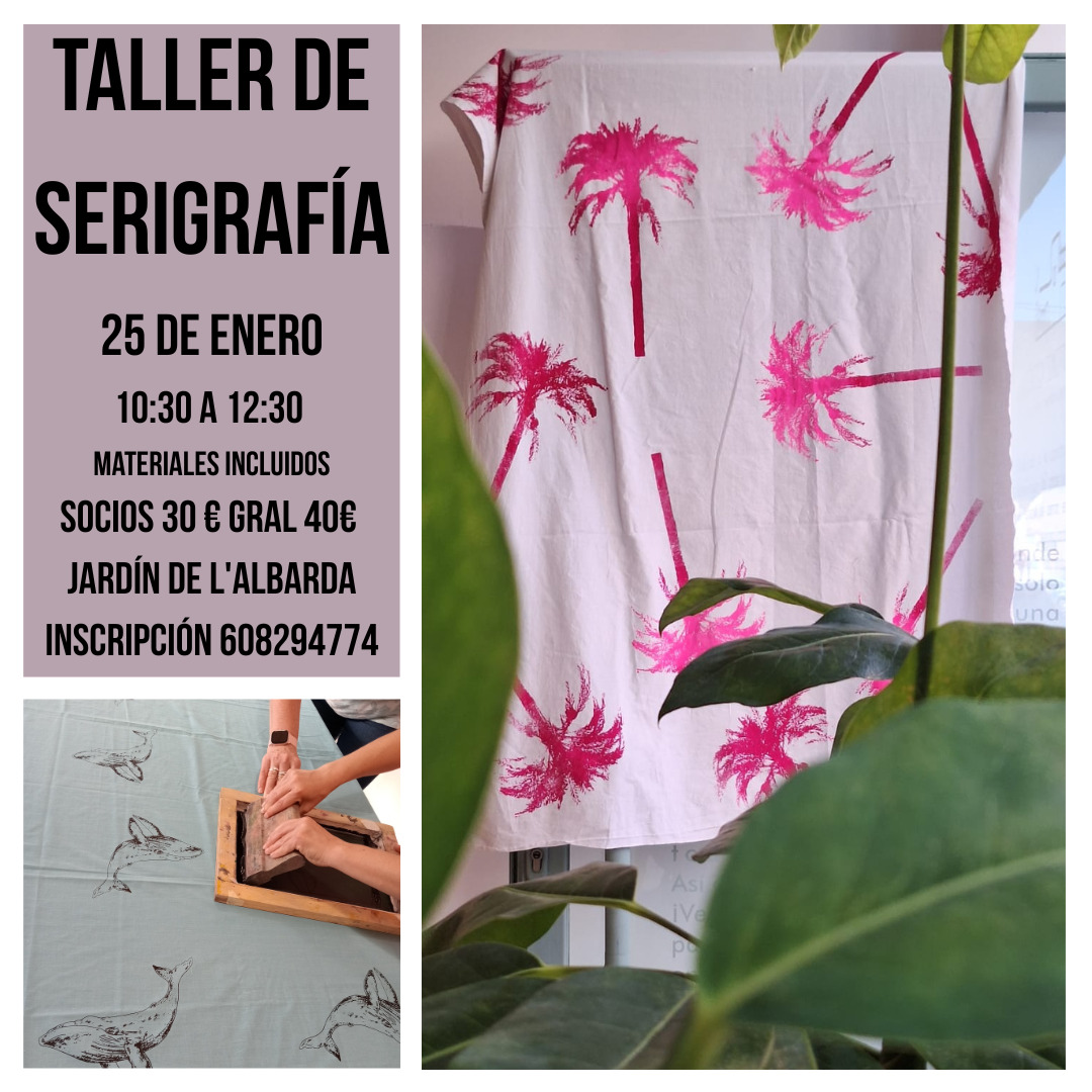 Taller de impresiones serigráficas sobre tela. En este taller experimentaremos las posibilidades de impresión a partir de imágenes ya existentes. Elegiremos y formaremos una paleta de color y una composición para imprimir sobre telas de algodón. El taller incluye los materiales pero también puedes traer tus propias telas de algodón o lino.