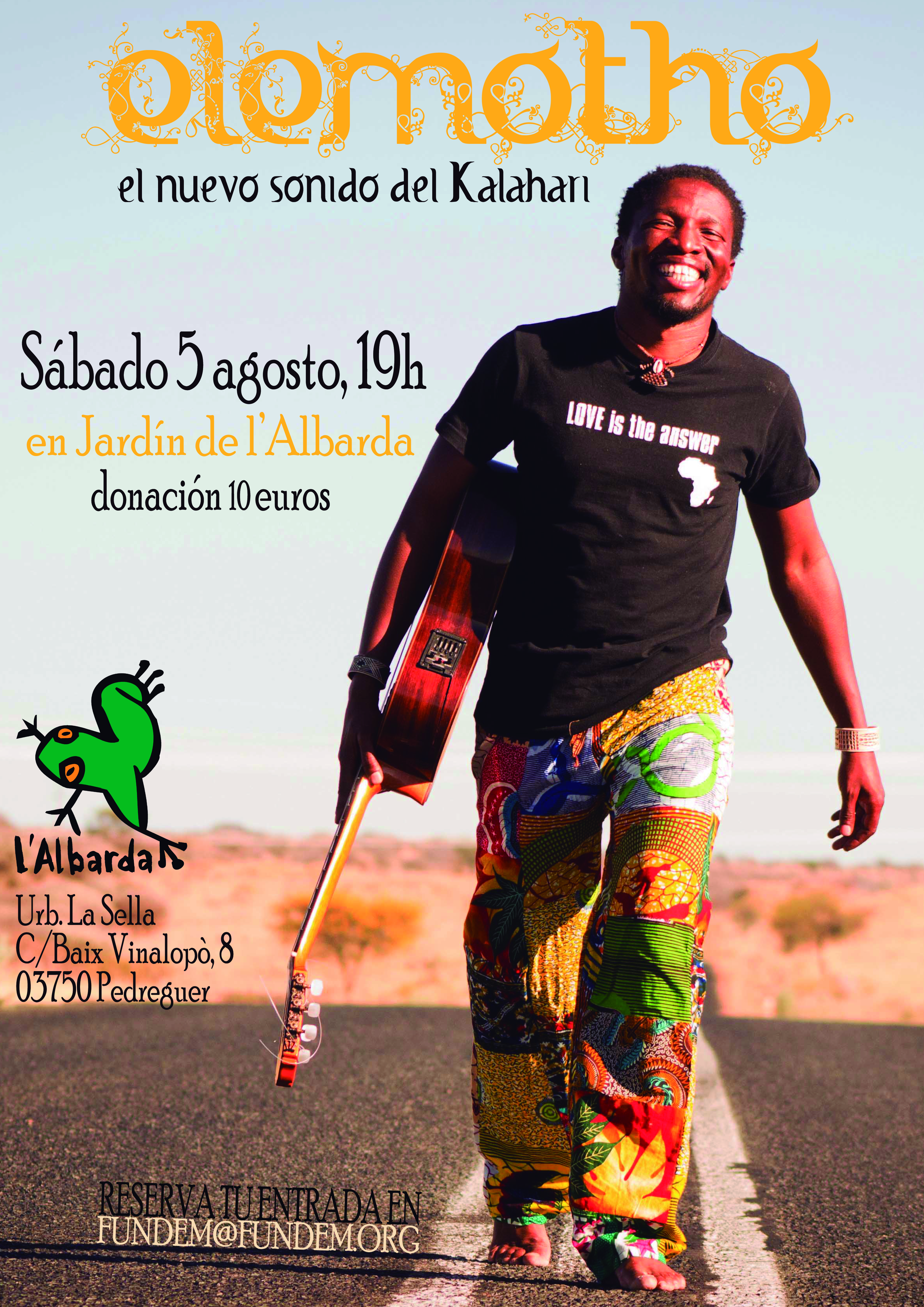 El sábado 5 de agosto a las 19h tendremos en el Jardín de l’Albarda música contemporánea africana traída desde Namibia por Elemotho.
