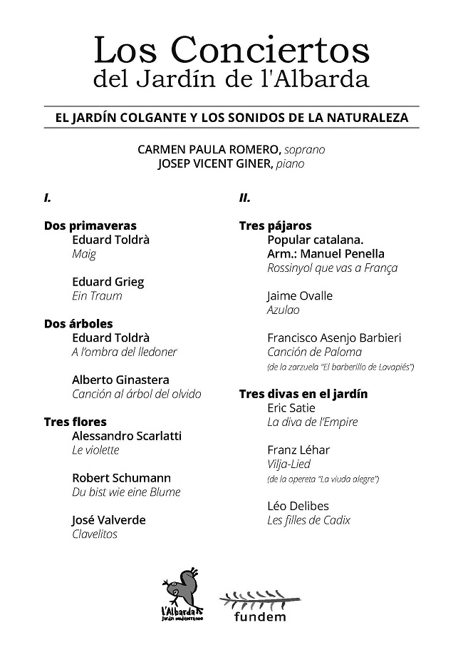 También se pueden reservar las entradas a través de fundem@fundem.org o a través de WhatsApp 696 975 290 indicando nombre y apellido, número de entradas y tipo (socio o no socio). Las reservas se realizarán hasta el viernes 20 de abril a las 13:00 h. Las entradas reservadas se podrán recoger y pagar en el Jardín el mismo día a partir de las 10h. En cualquier caso, recomendamos la adquisición anticipada de entradas, ya sea en puntos de venta o a través de internet, para una mejor organización el día del concierto.
