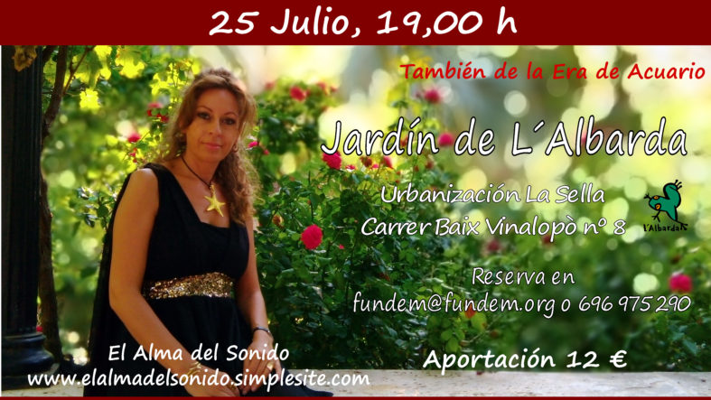 El próximo SÁBADO 25 de JULIO a las 19:00h tendrá lugar en nuestro Jardín de l’Albarda el singular evento «Sonidos del Mundo y Concierto de Mantras» organizado por Gema Rodríguez.
