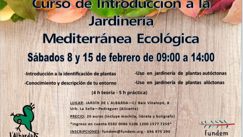 Los sábados 8 y 15 de febrero, el ambientólogo y guía del Jardín, Ángel Pérez, impartirá un curso de ‘Introducción a la Jardinería Mediterránea Ecológica‘ apto para todo el que esté interesado y desee acudir. El pago de la inscripción se realizará a través de la siguiente cuenta bancaria: ES92 0086 5106 1200 1577 7259