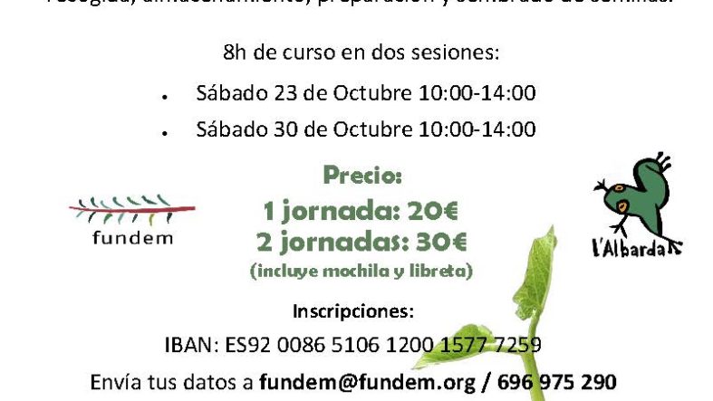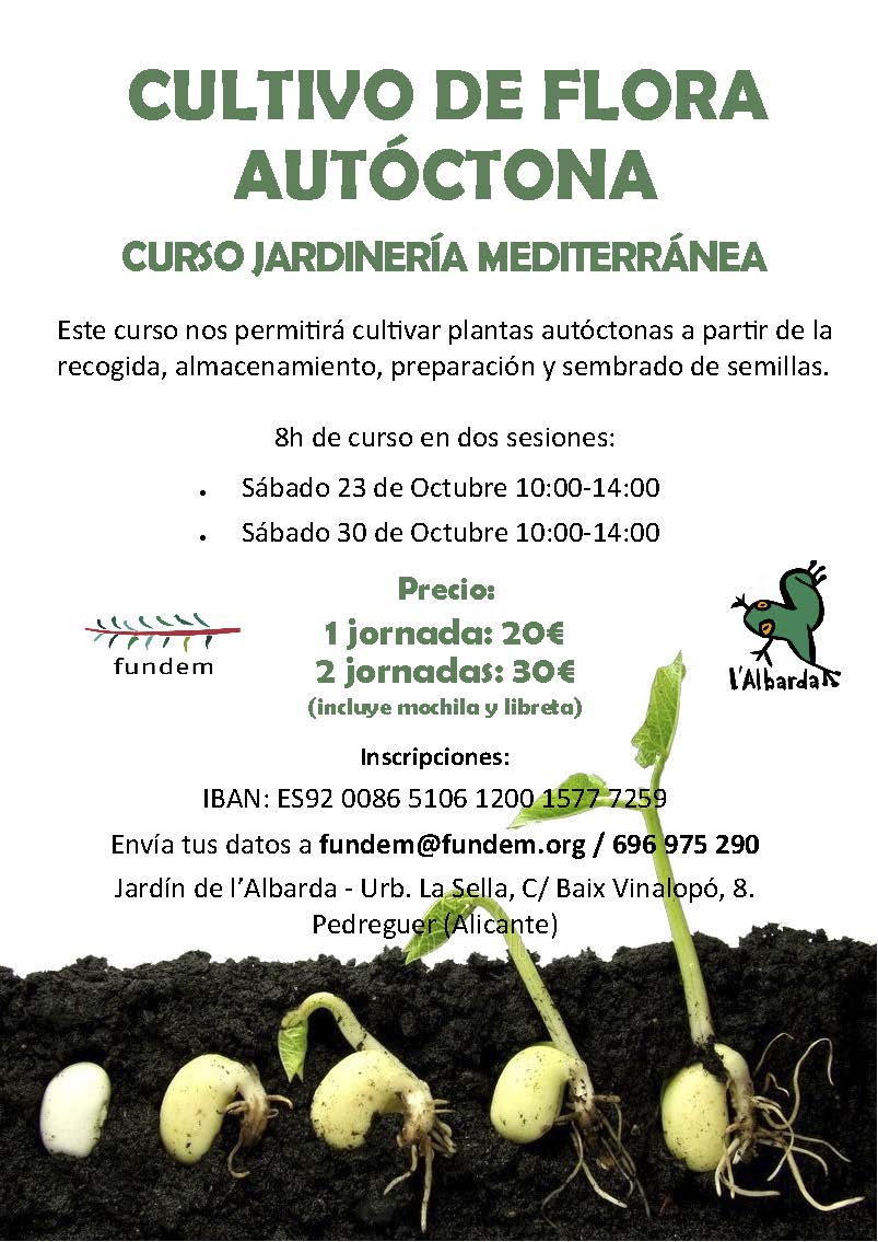 Los sábados 23 y 30 de octubre, el ambientólogo y guía del Jardín, Ángel Pérez, impartirá el curso de jardinería mediterránea: «Cultivo de flora autóctona», apto para todo el que desee acudir. El pago de la inscripción se realizará a través de la siguiente cuenta bancaria: ES92 0086 5106 1200 1577 7259