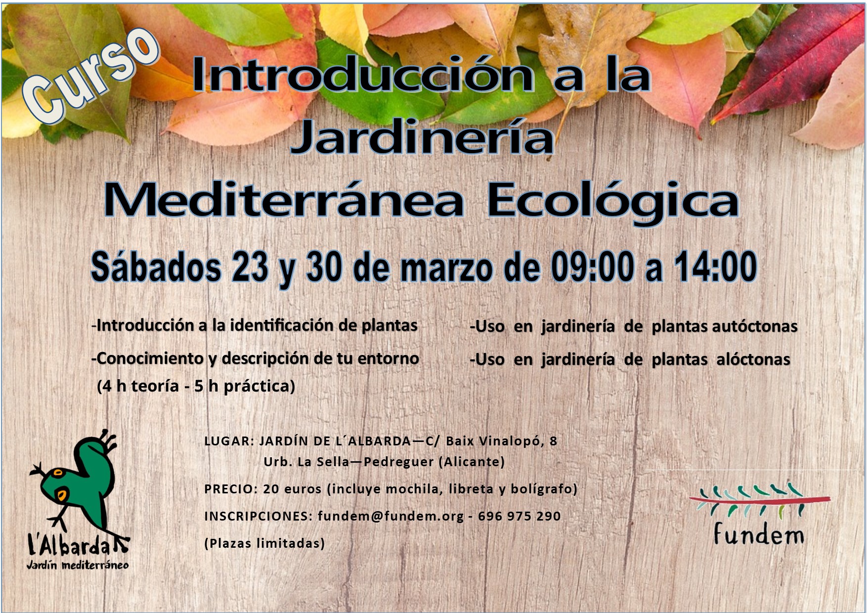 Tras la gran acogida que tuvo el curso impartido en febrero, los sábados 23 y 30 de marzo, el ambientólogo y guía del Jardín, Ángel Pérez, repetirá el curso de ‘Introducción a la Jardinería Mediterránea Ecológica’ apto para todo aquel que desee acudir. El pago de la inscripción se realizará el mismo día 23 de marzo en el propio Jardín.