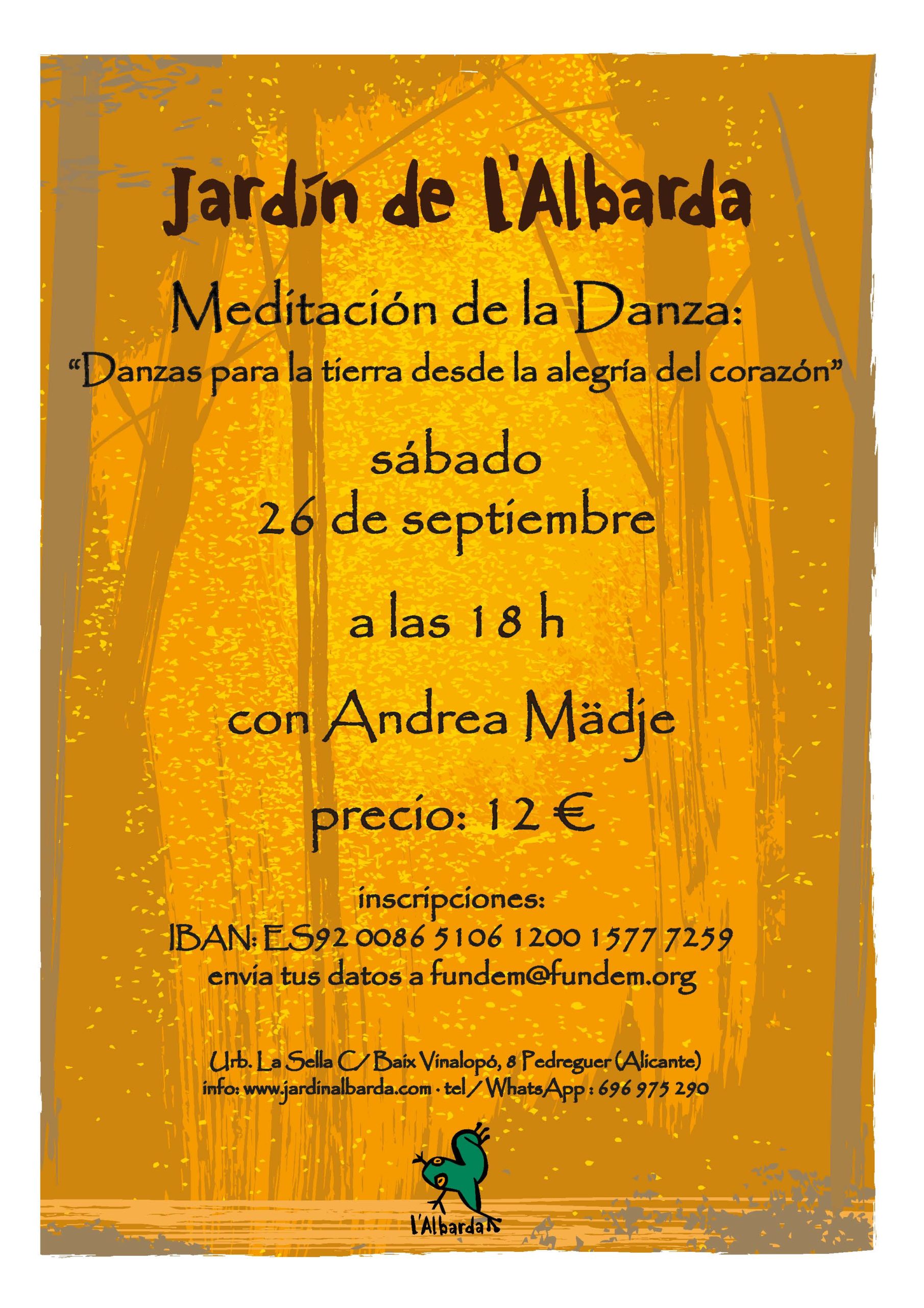 El sábado 26 de SEPTIEMBRE a las 18h disfrutaremos de una tarde con danzas circulares y meditación en movimiento, para que nuestro cuerpo, mente y corazón vibren de nuevo juntos.Además, llenaremos nuestros sentidos con la belleza del ambiente natural.