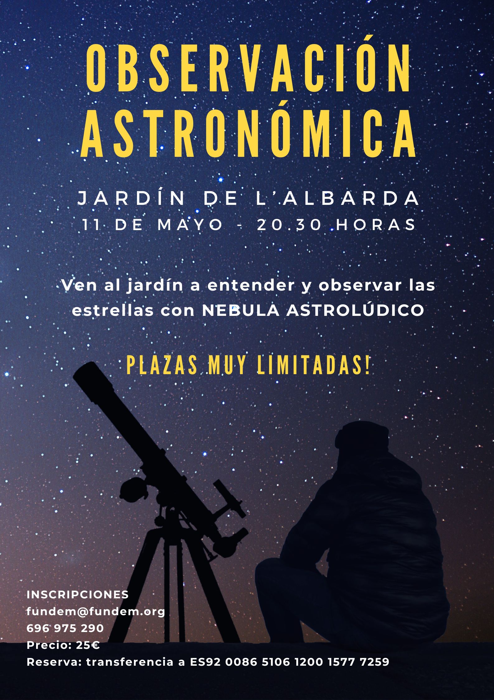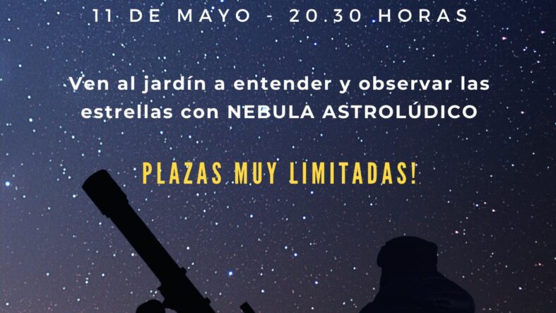 🌌 Attention lovers of the cosmos! 🌠 From Jardín de l’Albarda we have a new proposal for you: an exciting night of astronomical observation on 11 May with the experts of Nébula Astrolúdico. Come and join us as we explore the wonders of the universe from our garden. It’s exciting, isn’t it?