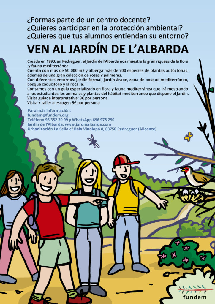 El Jardín de l’Albarda es un lugar perfecto para las actividades al aire libre programadas de los centros educativos. ¡El Jardín de l’Albarda es más que un jardín! Está lleno de vida, con plantas propias del territorio valenciano y fauna autóctona. Los alumnos podrán encontrar un aula de naturaleza, animales de granja, acuarios, terrarios y espacios para el recreo donde disfrutar, comer y descansar.